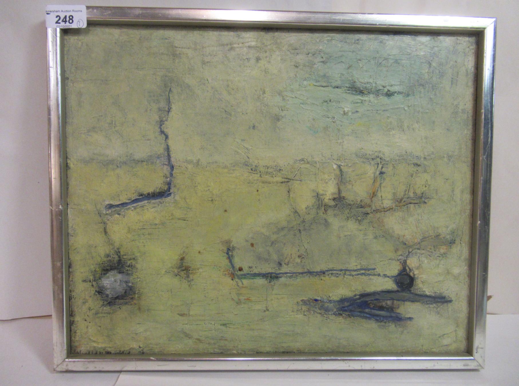 Herold G. Kristensen (Sept. 22, 1930 - 2014) was a Danish abstract artist. His works are based on observations of nature and landscapes, but very abstract and reduced to color fields reproduced with hurried brush strokes.