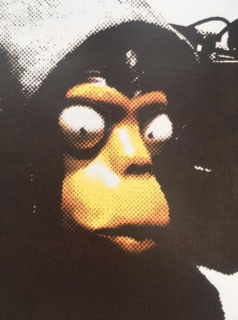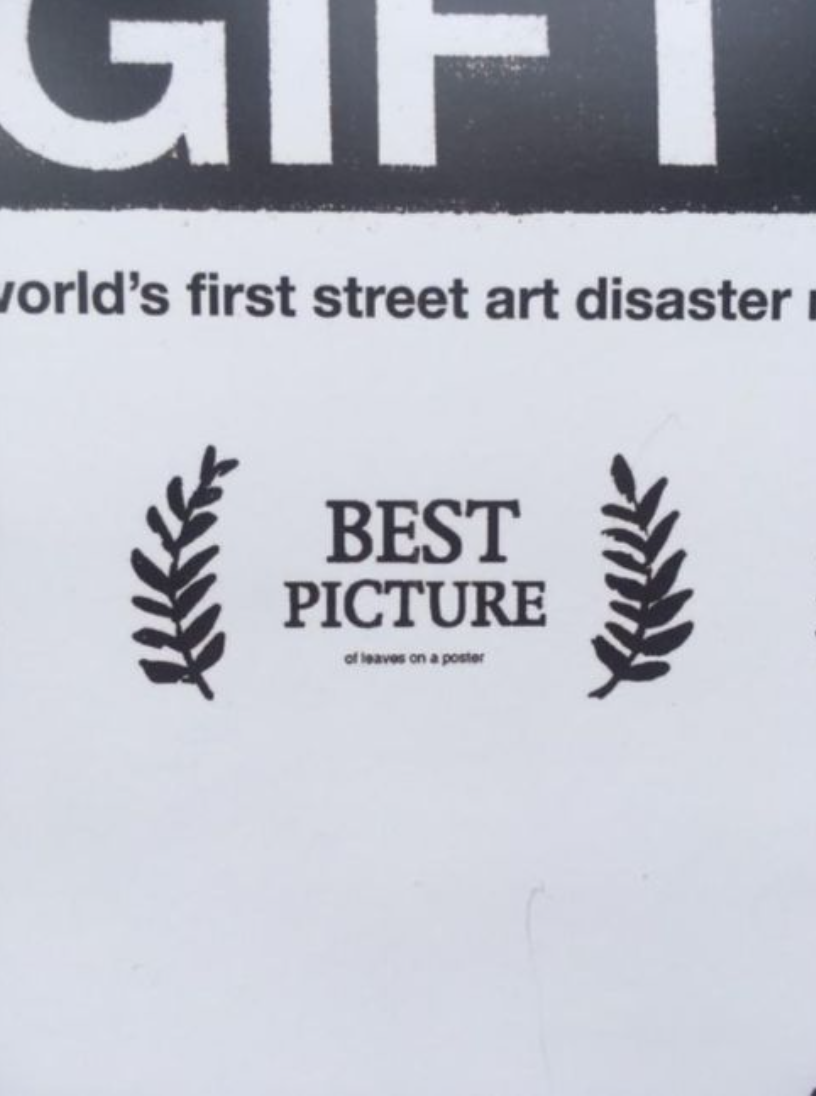 In 2010, a version of the image was distributed in the form of a publicity poster at the ‘Don’t Panic’ Promotion in Brighton the double-sided poster, 'Exit Through the Gift Shop', Verso