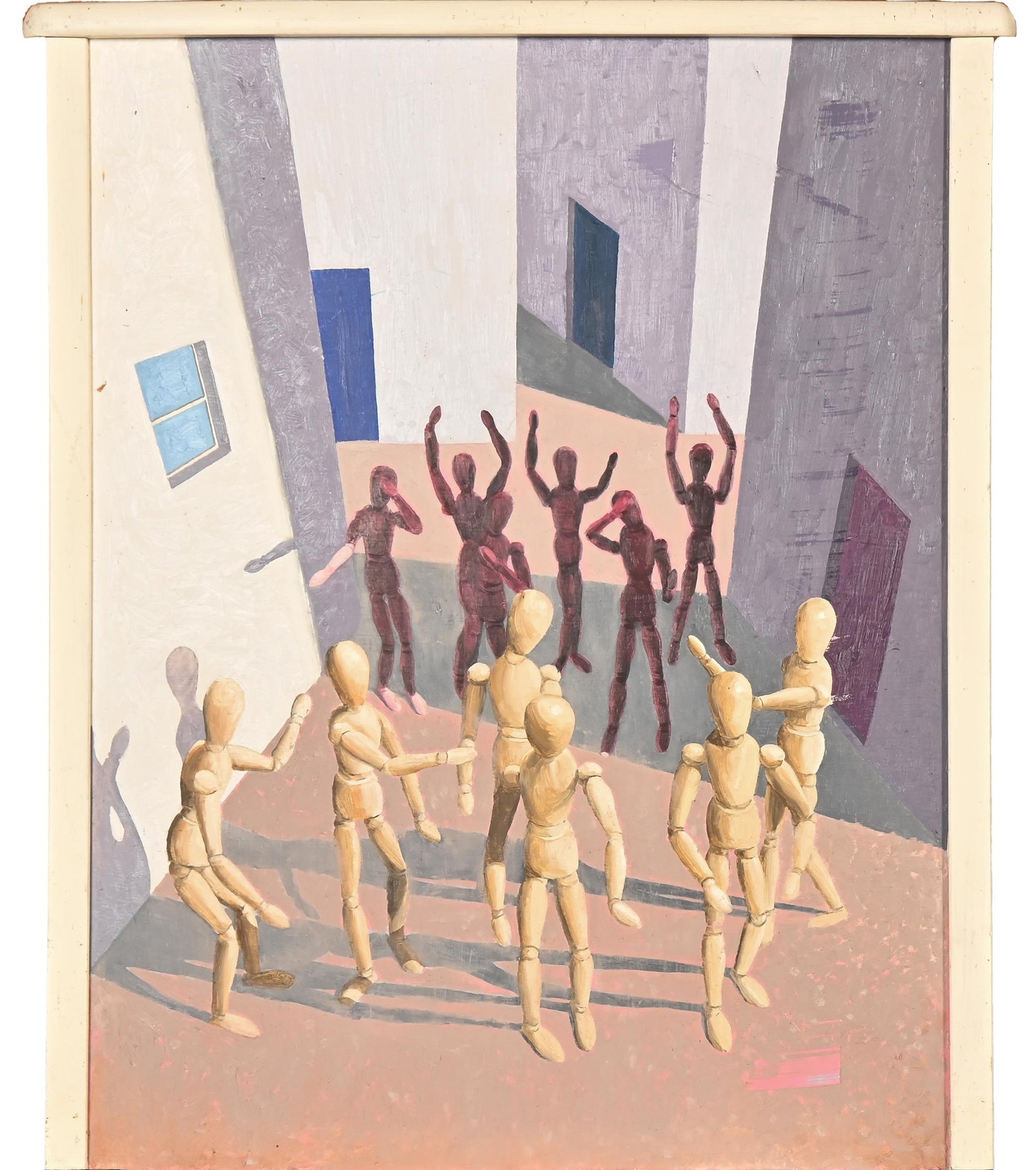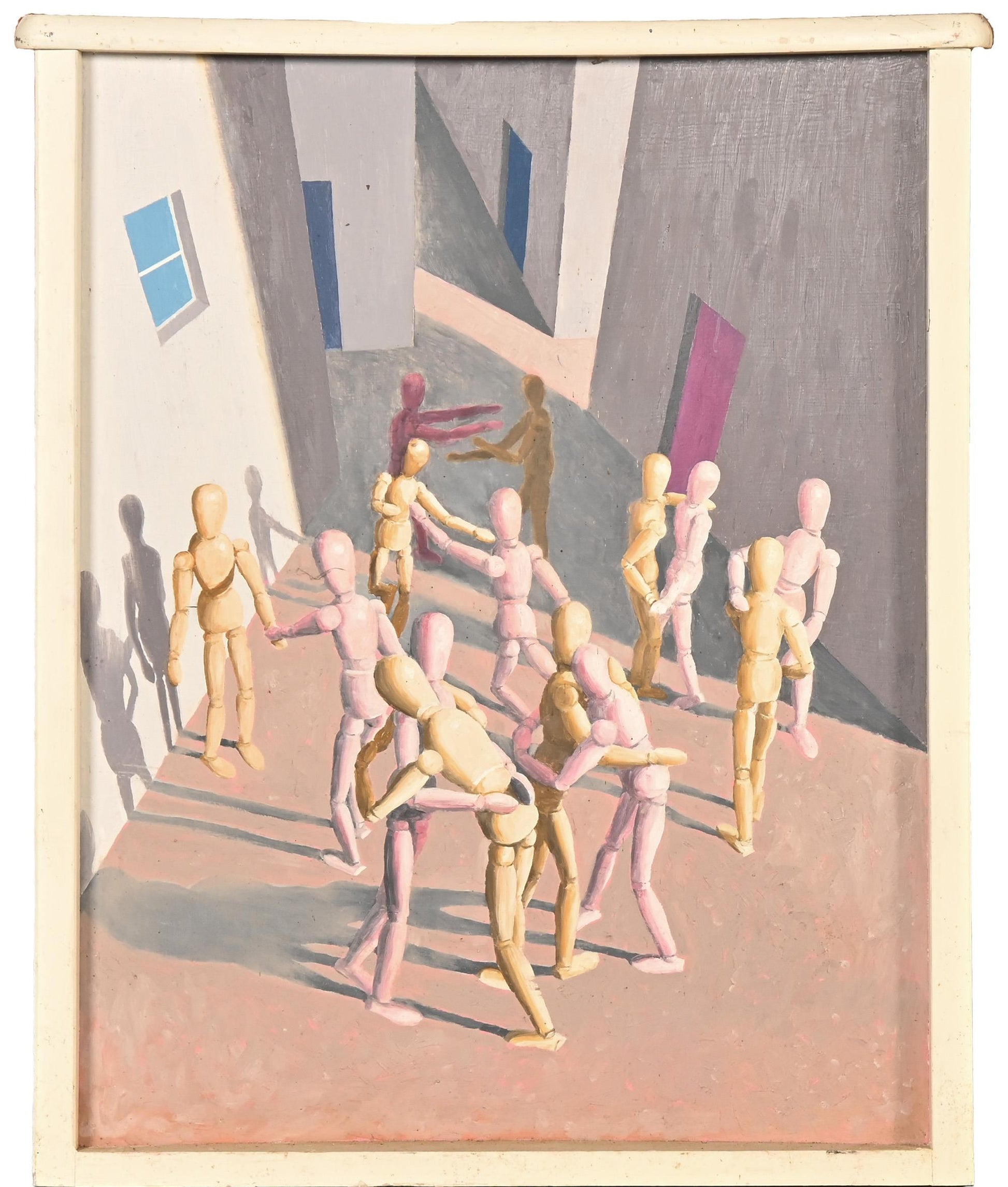 Derek Carruthers - 2 concave paintings. Untitled (lay figures)