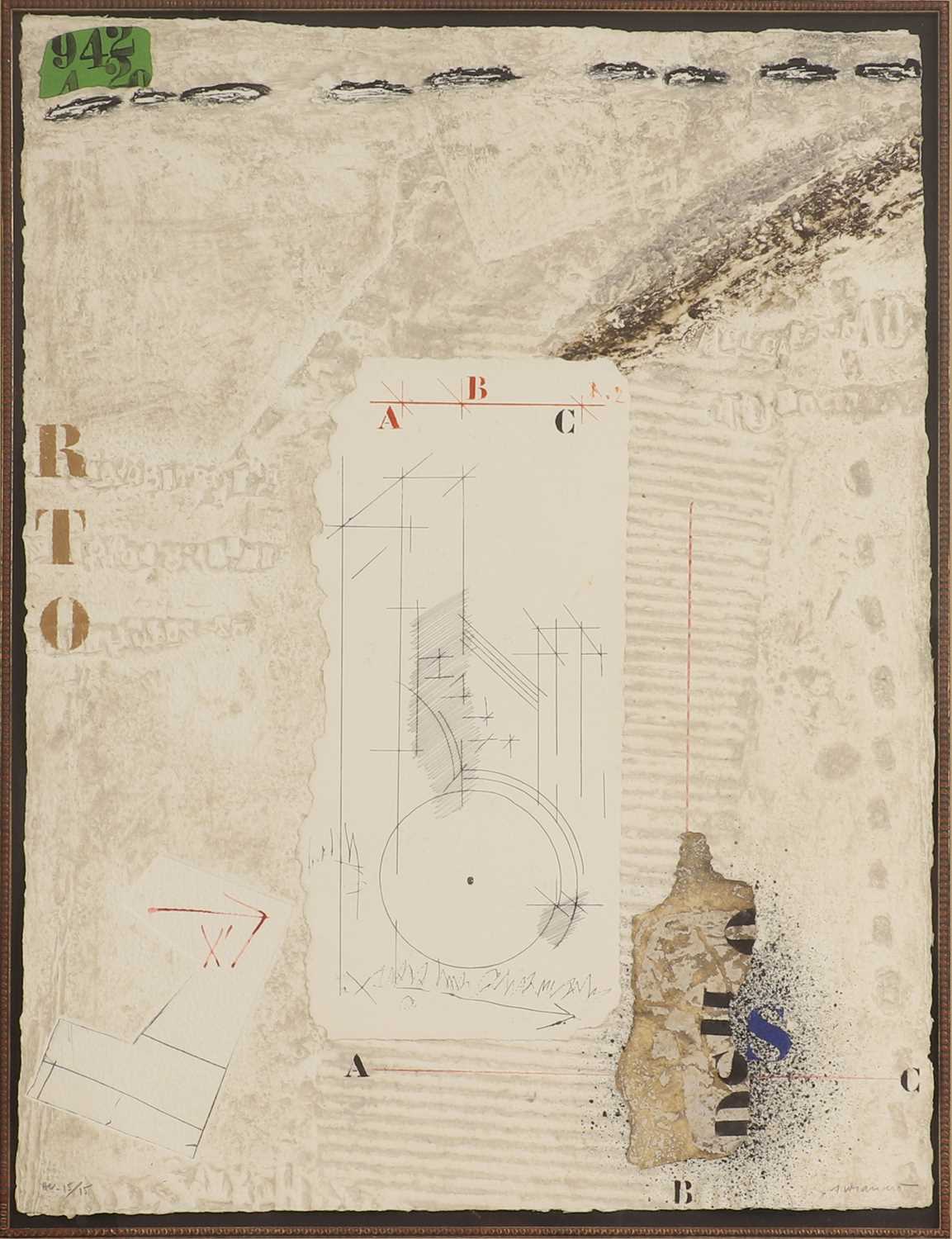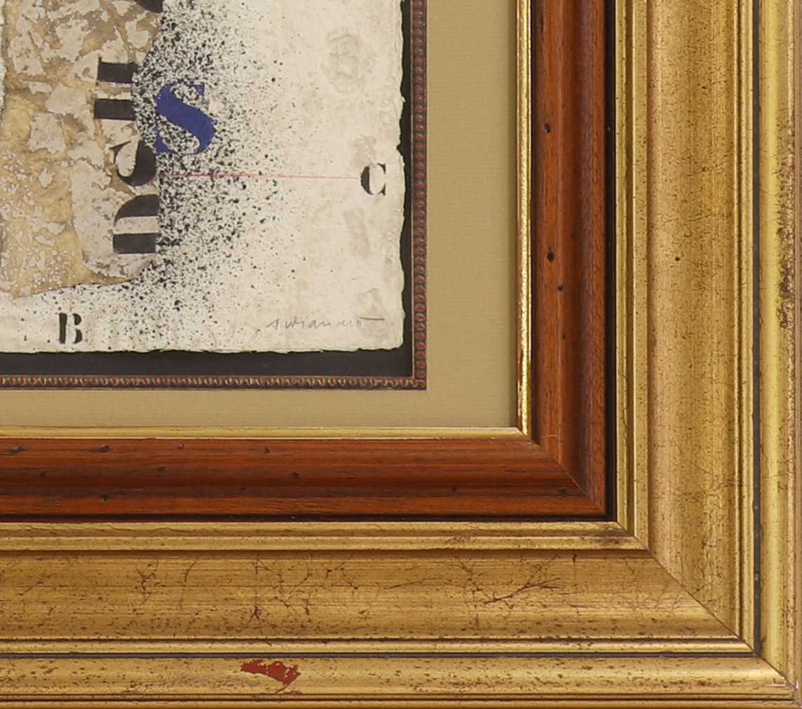 Light cockling, the work appears to be stuck down by the corners. The edges are deckled as would be expected of handmade paper. Not viewed out of glazed frame but presents well overall.