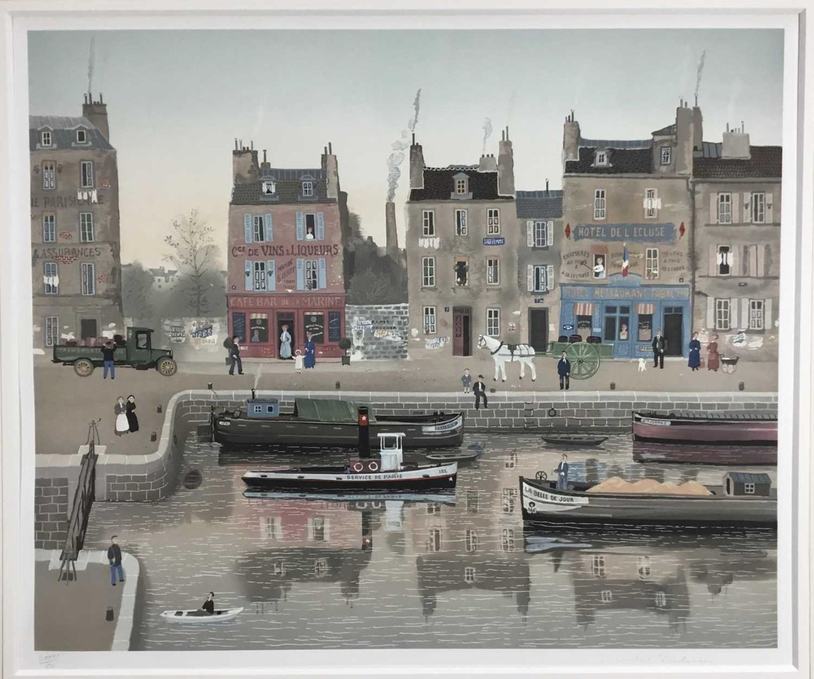 Michel Delacroix was born in 1933 on the Left Bank, in the 14th Arrondissement of Paris. He started painting at the early age of seven—just as the German Occupation of Paris began. Paris as it was during the Occupation is the Paris that appears in his paintings: there is a virtual absence of automobiles and streetlights; the city is quiet and quaint. His city-scapes display a simpler Paris of the past, of his boyhood, rather than the urban metropolis we know today.