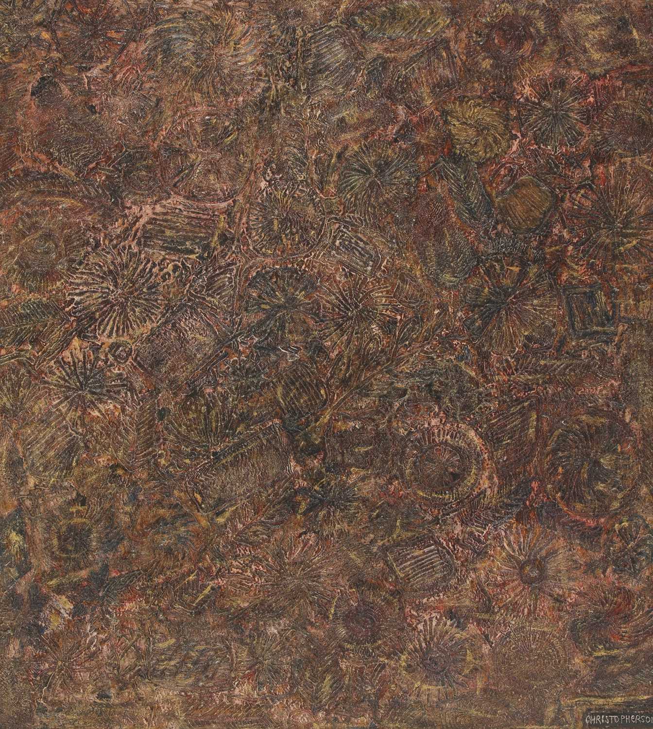 Born in Blackheath, London in 1921, Christopherson began his working life at Shell-Mex House in 1938, the period when Jack Beddington, the manager of the publicity department was pioneering the use of modern art in advertising. After a wartime illness, Christopherson worked at County Hall in London, choosing for his office wall a print of Paul Nash's Wood on the Downs and Nash's primeval landscapes and magical moons were later to have a lasting influence on Christopherson's own paintings.