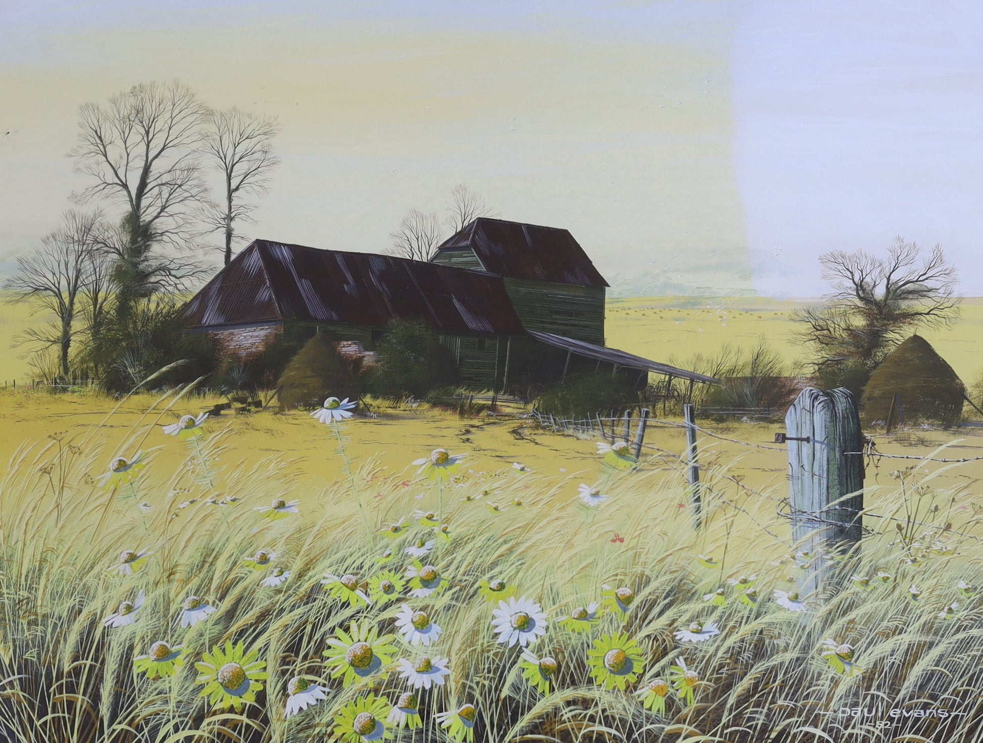 Paul Evans - Hay barn and meadow in autumn landscape