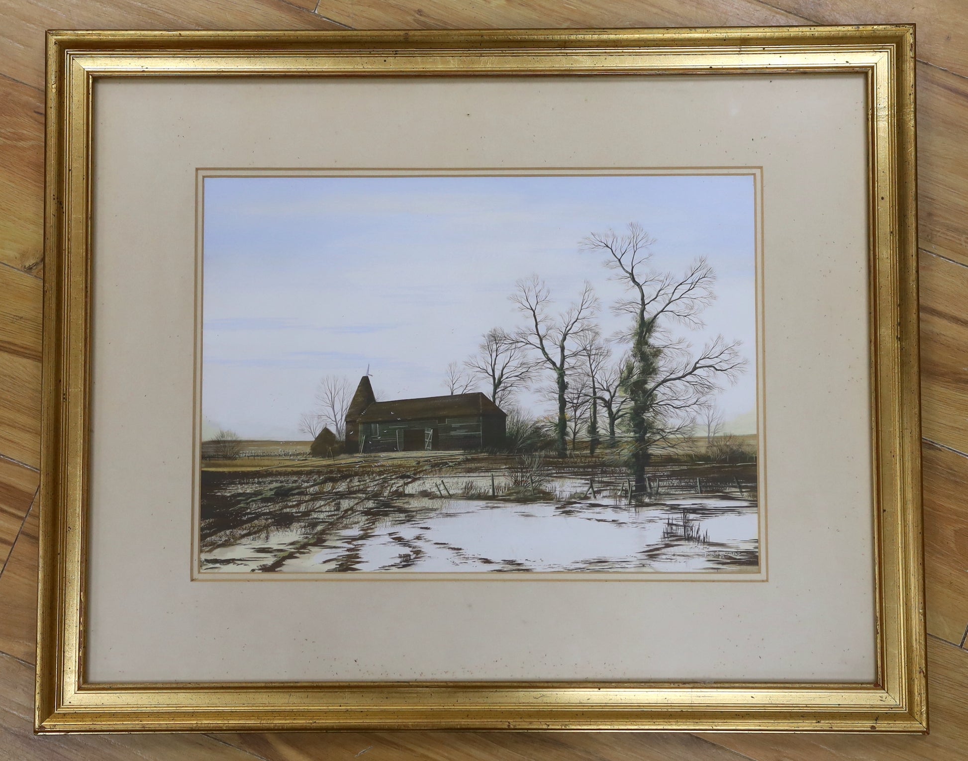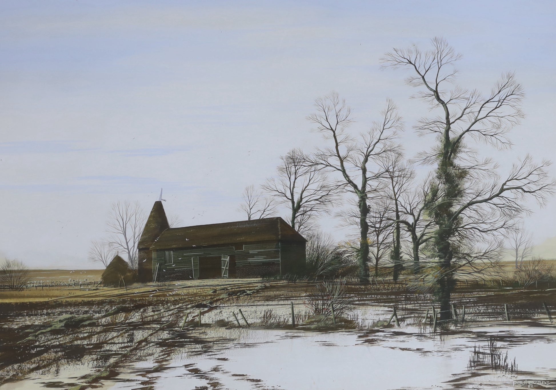 Paul Evans - Oast house in winter landscape
