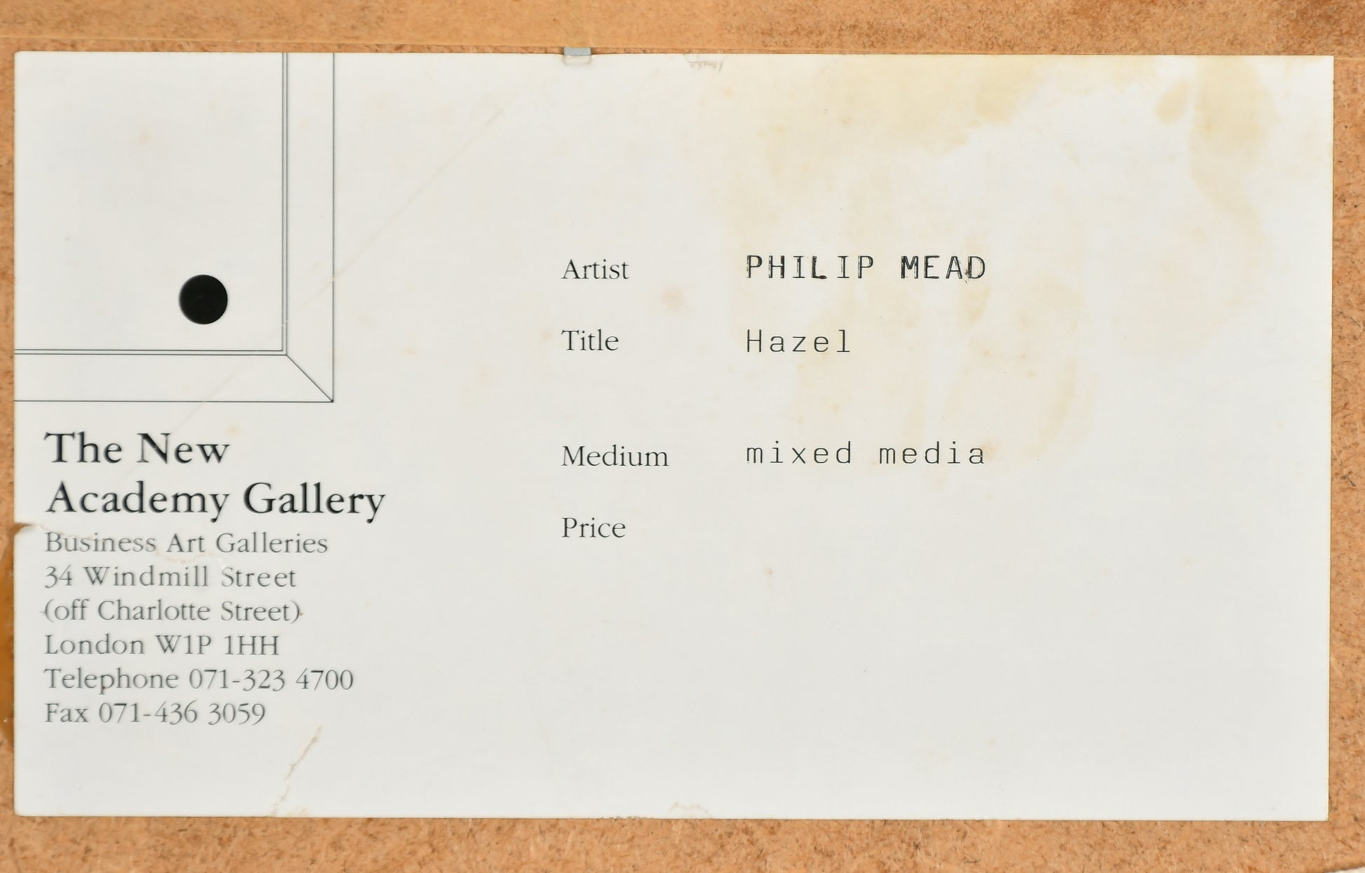 Provenance: The New Academy Gallery, London