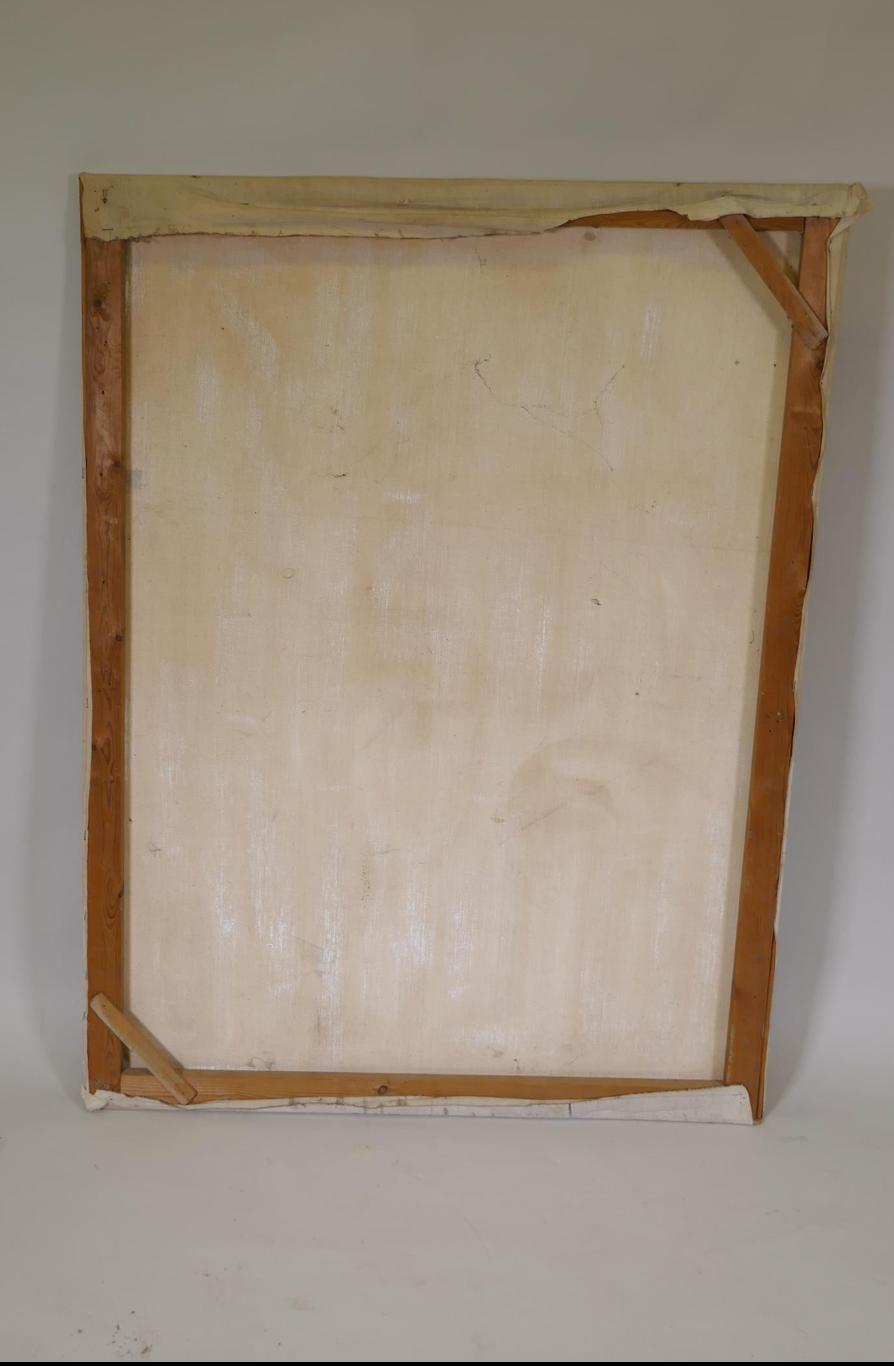 Oil on canvas, small tear in canvas.