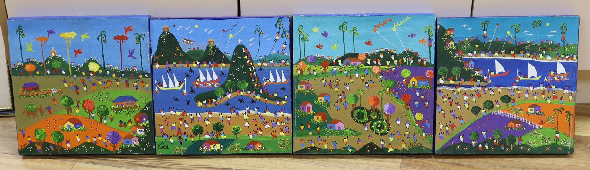 Set of four oils on canvas. Guaratiba and Santa Tereza, Rio de Janeiro, Brazil.