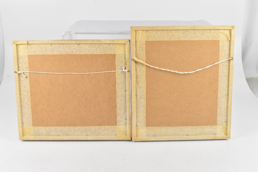 A pair of black and white etchings