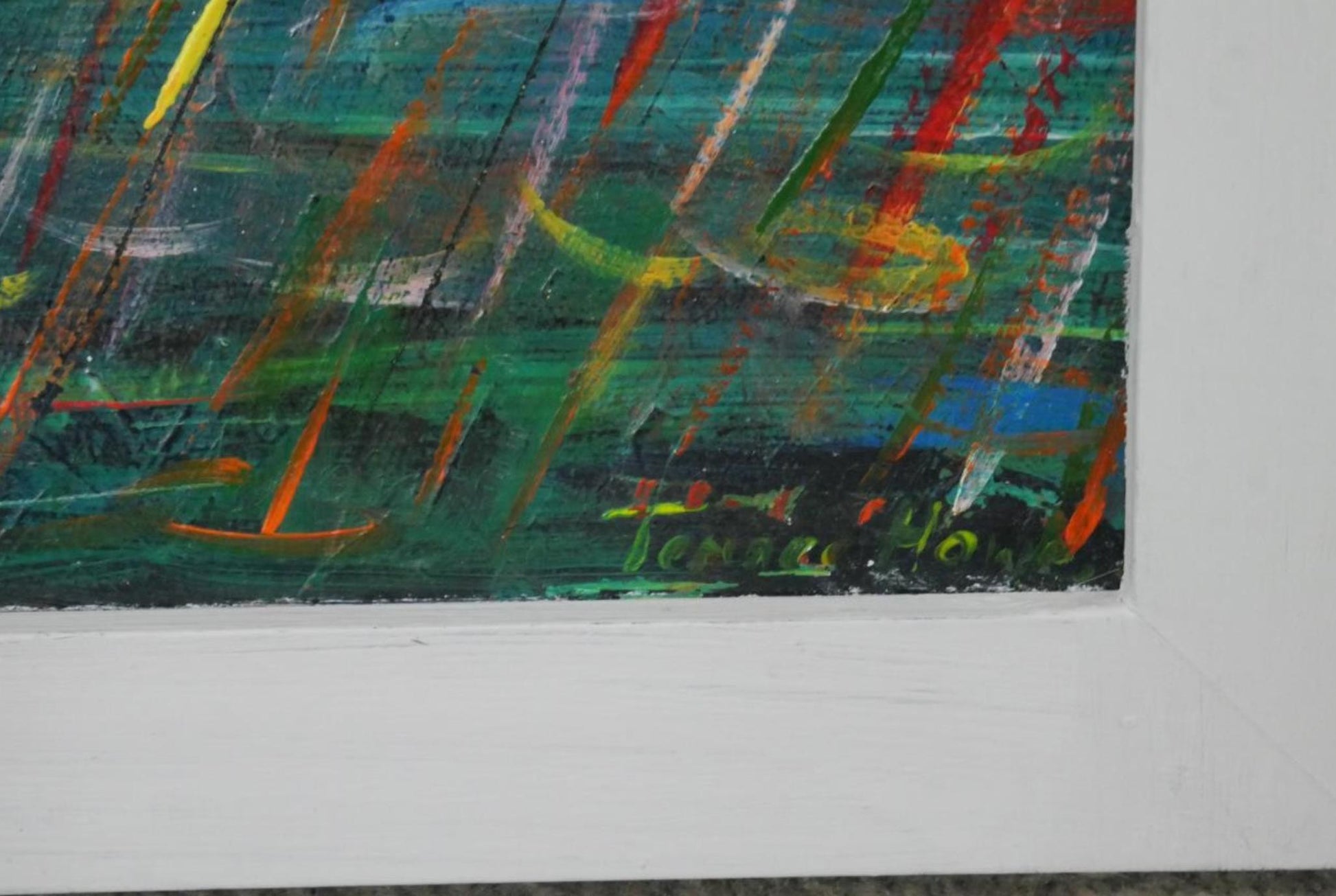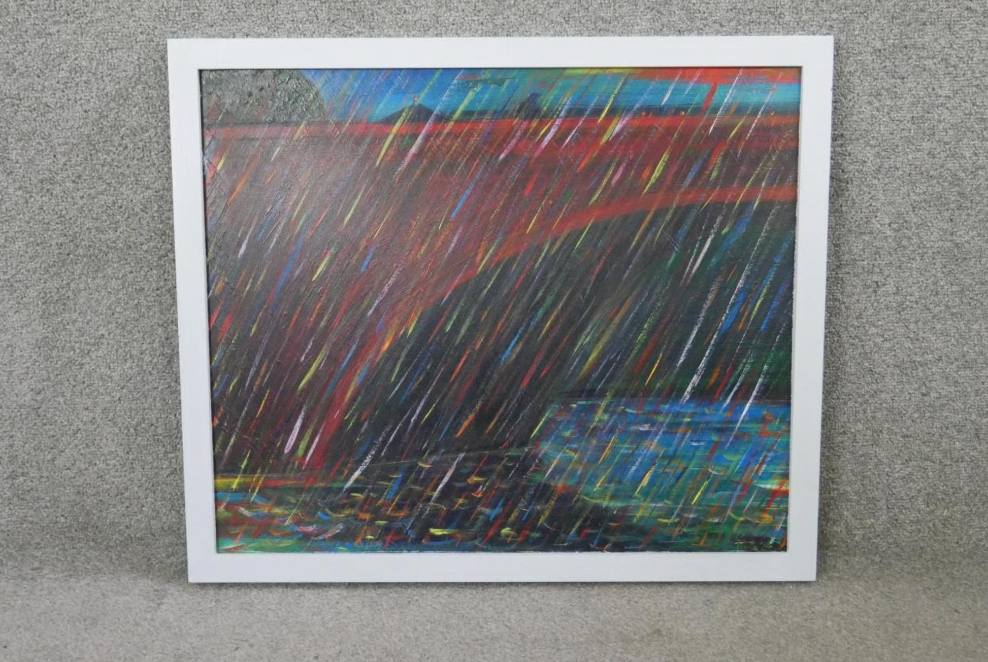 A framed oil on board
